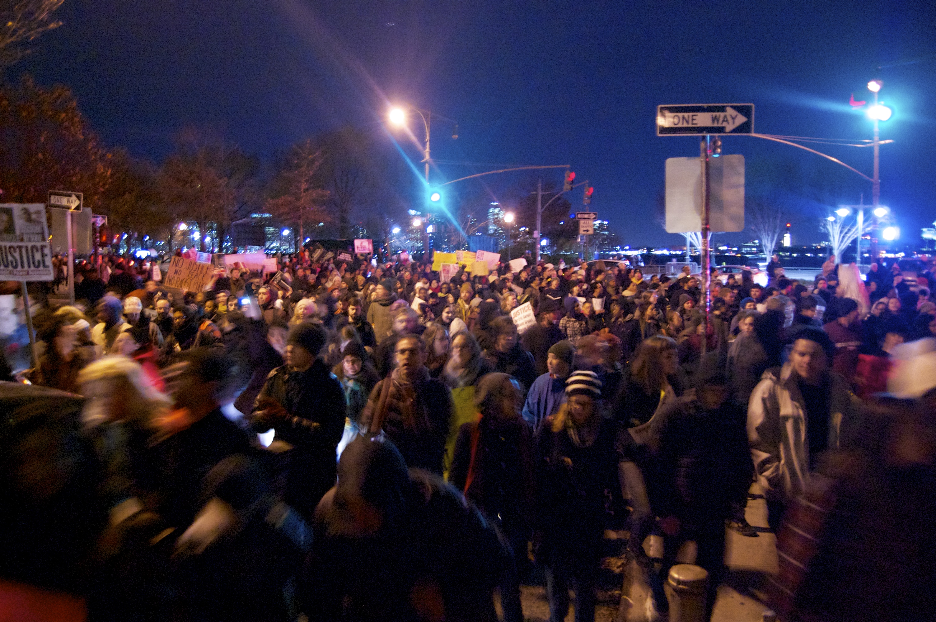 I photographed one of the at least three marches going on downtown last night, which began at Foley Square and ended up underneath the FDR before heading up 1st Ave to Times Square. I witnessed the shut down of the Holland Tunnel, Canal Street, Broadway, both directions of the West Side Highway, W 14th Street, Union Square, Park Ave South, E 23rd Street and the underpass at the FDR. It takes a lot of people to do that, and there were several other coinciding events in different parts of NYC.